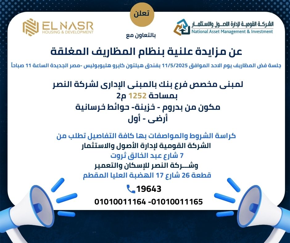 That El-Nasr Housing and Development Company be the first economic company to bear the sign of first borrowing and one of the five largest real estate developers in the Egyptian market.